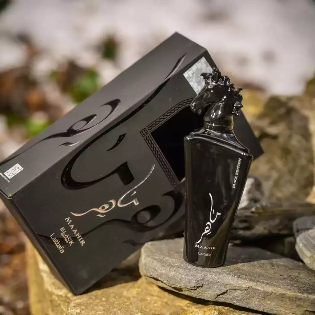 Maahir Black Edition de Lattafa Perfumes é um perfume Oriental Especiado Compartilhável. É um perfume é amadeirado, terroso, esfumaçado, resinoso e moderadamente atalcado por conta da raiz de orris com a violeta.