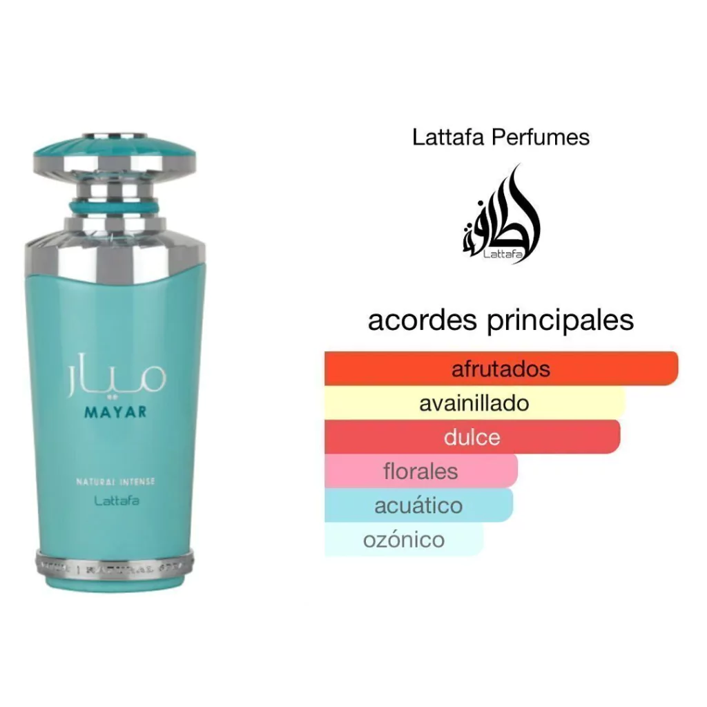 Mayar Natural Intense é um perfume super aquático, fresh, green, floral frutado com a nota de figo bem proeminente, figo verde. O jasmin, bem delicado e a flor de lótus também estão presentes nesta fragrância.