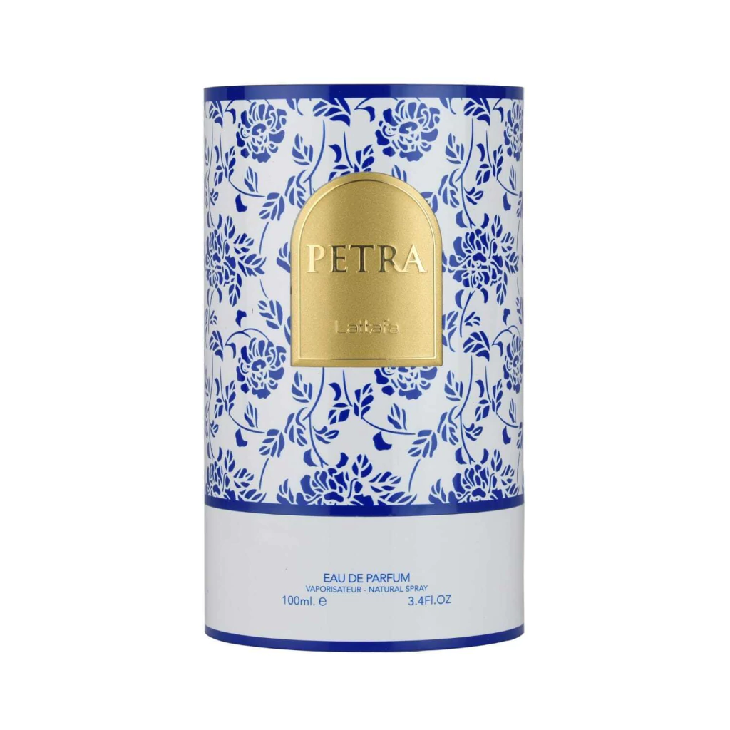 Petra de Lattafa Perfumes é um perfume Floral Frutado Gourmet Compartilhável lançada em 2025. Desenvolvido para mulheres que buscam um perfume sensual e sofisticado, combina notas frutais, florais e gourmand, inspirado no luxo descontraído do Mediterrâneo.